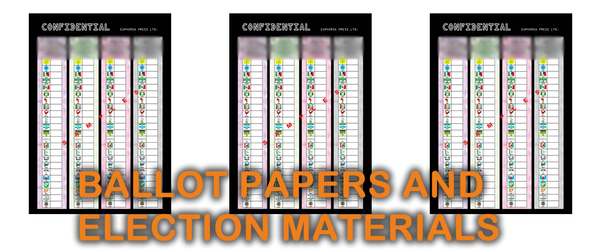 At Euphoria Press, we have produced lots and lots of ballot papers and election materials in Nigeria. All materials are produced in conformance with the changing worldwide standards that govern security, data storage and interoperability.